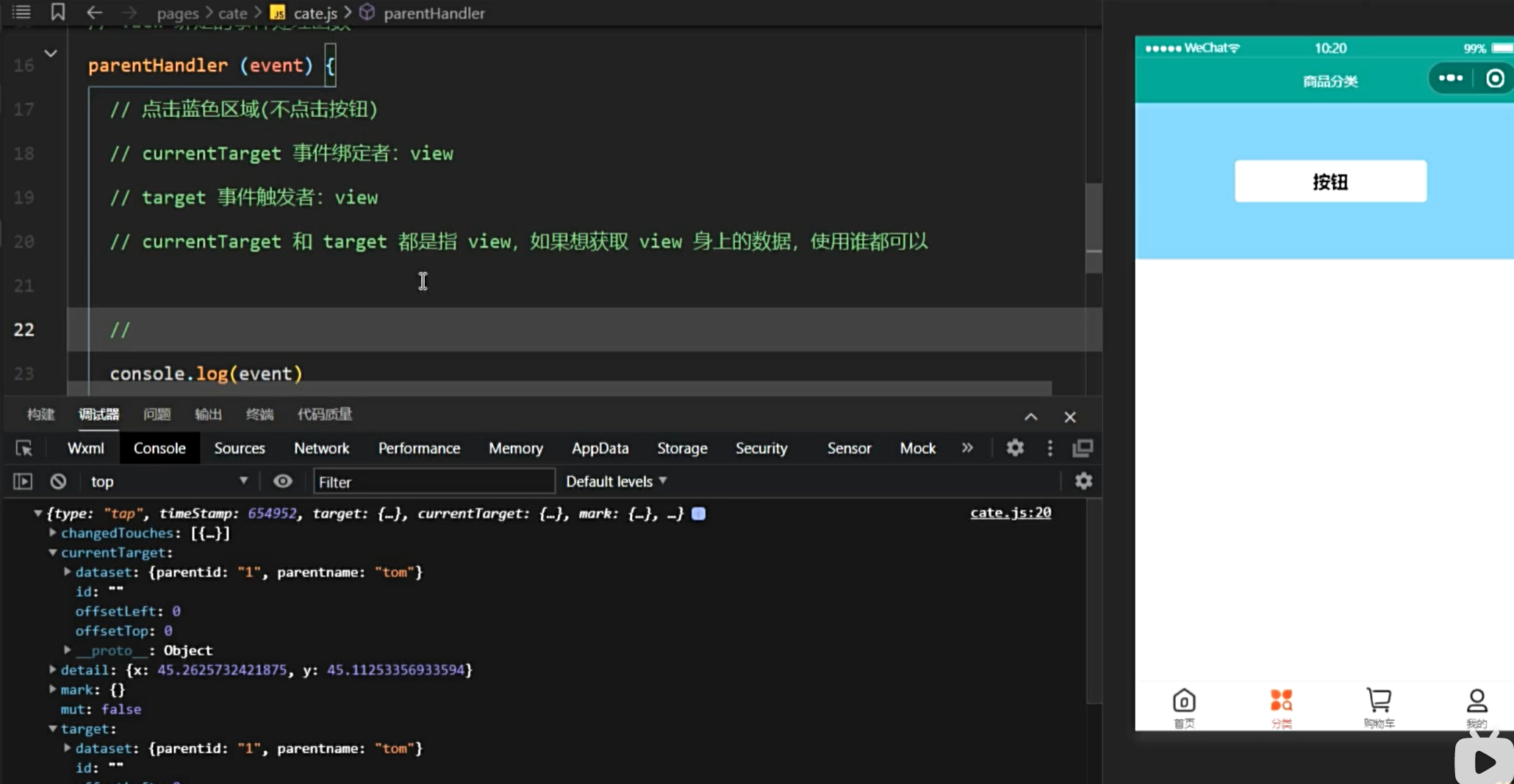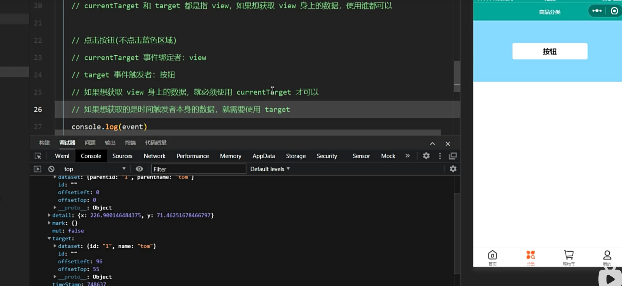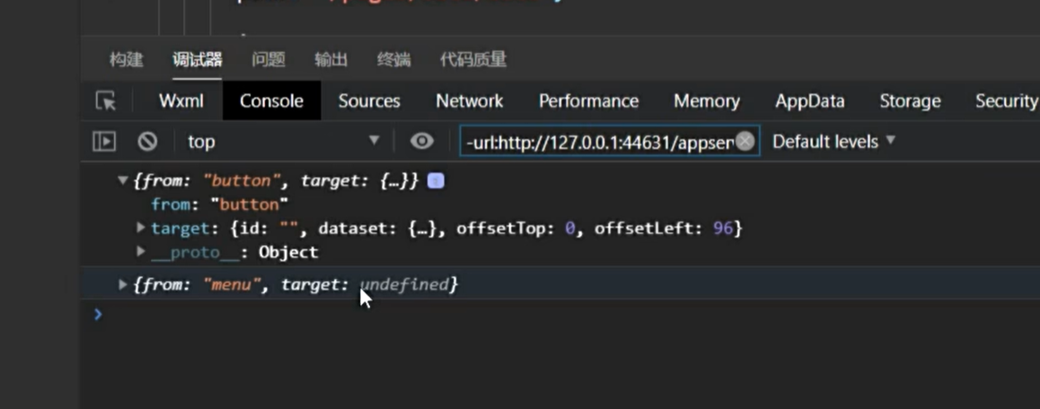 // 通过事件对象,可以看到,在 event.detail 中可以获取到 code