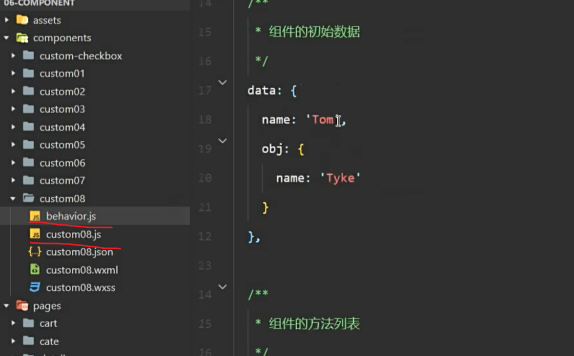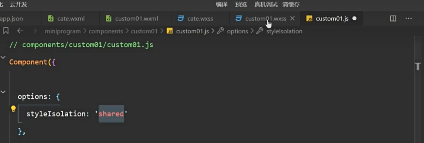 - 页面文件,wxss、json 文件能够覆盖主体文件中的样式和配置