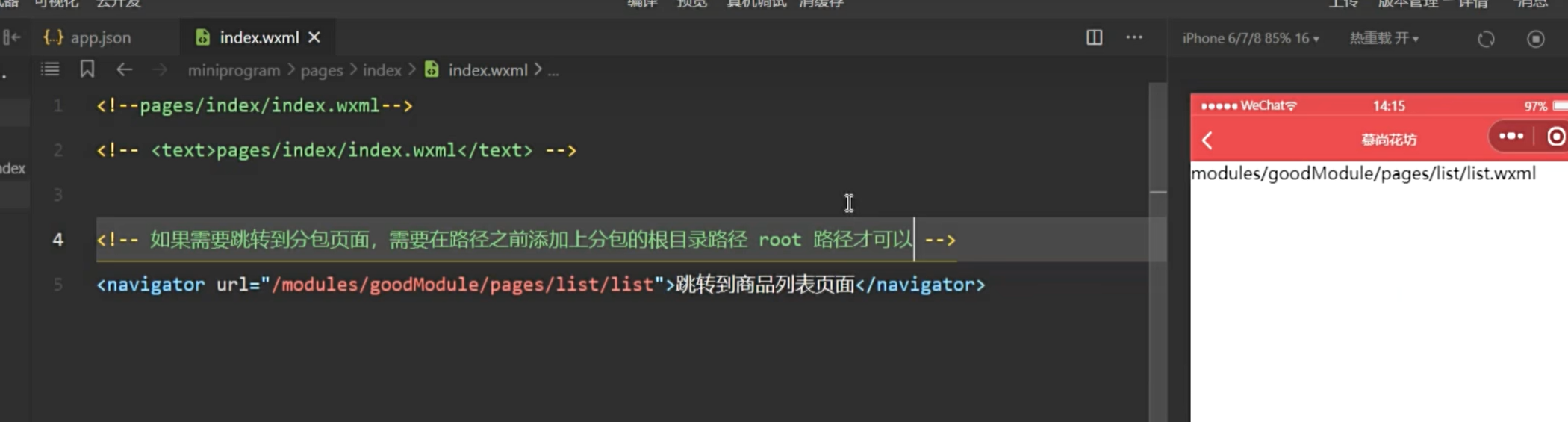 一个完整的小程序项目分为两个部分:主体文件、页面文件