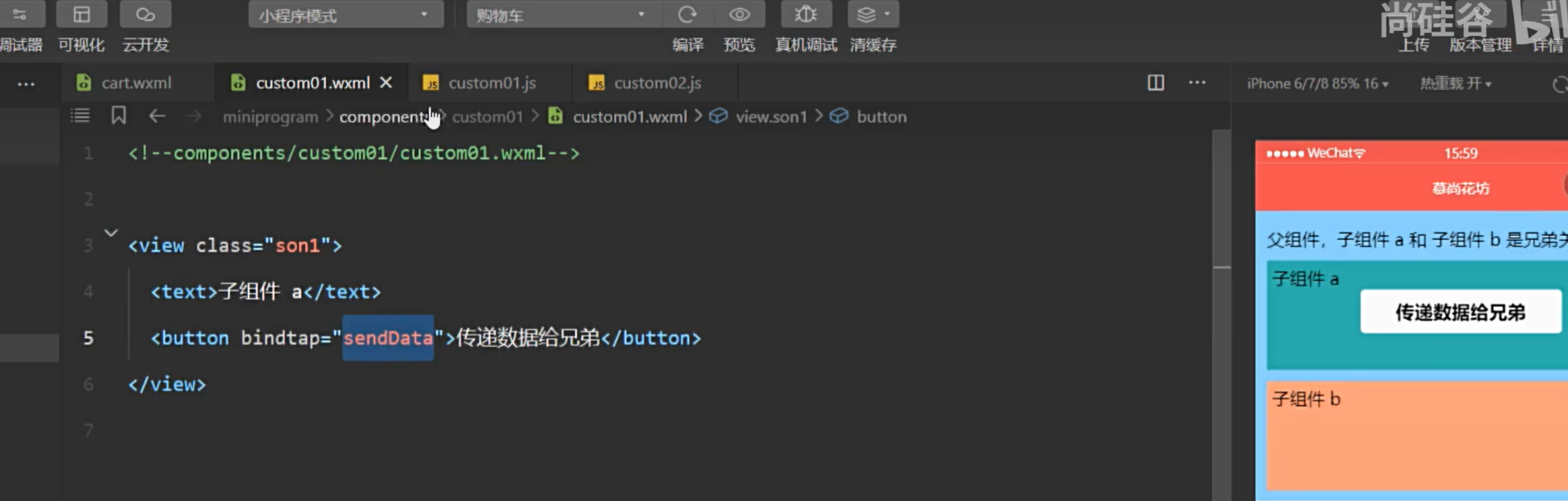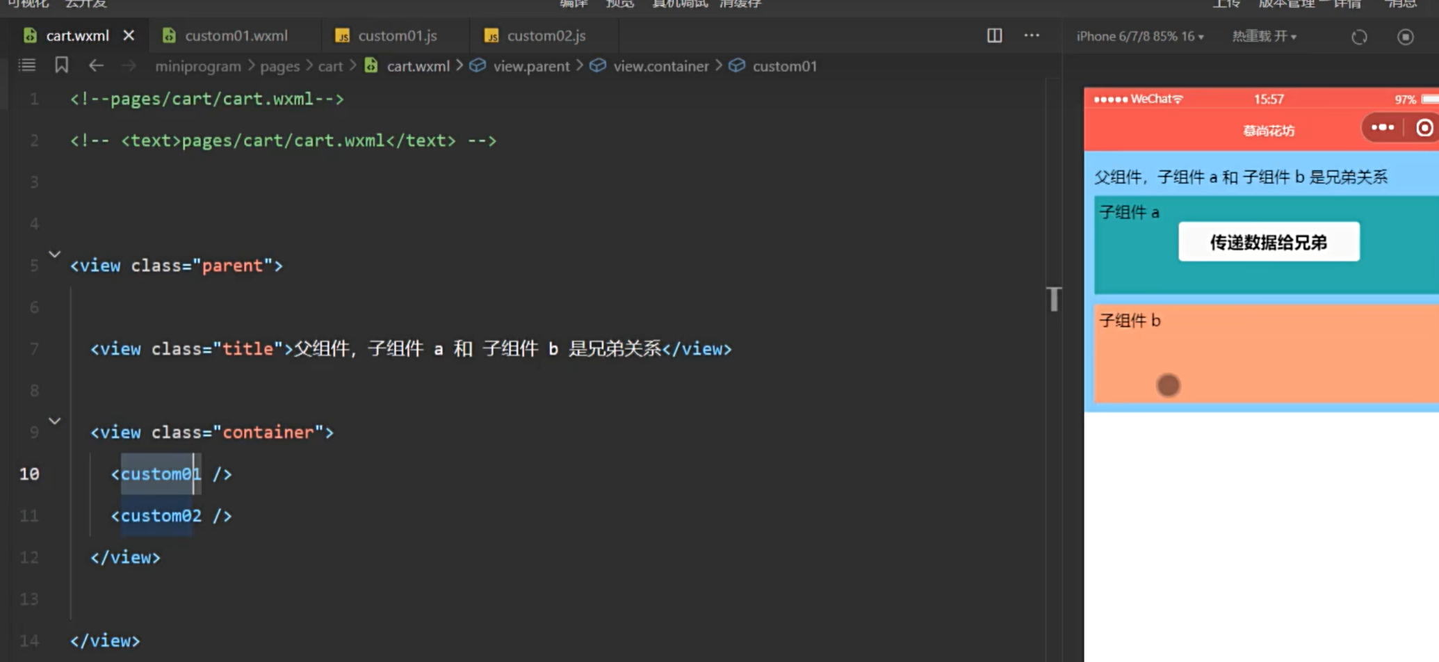 // 需要使用 emit 定义自定义事件,携带需要传递的数据