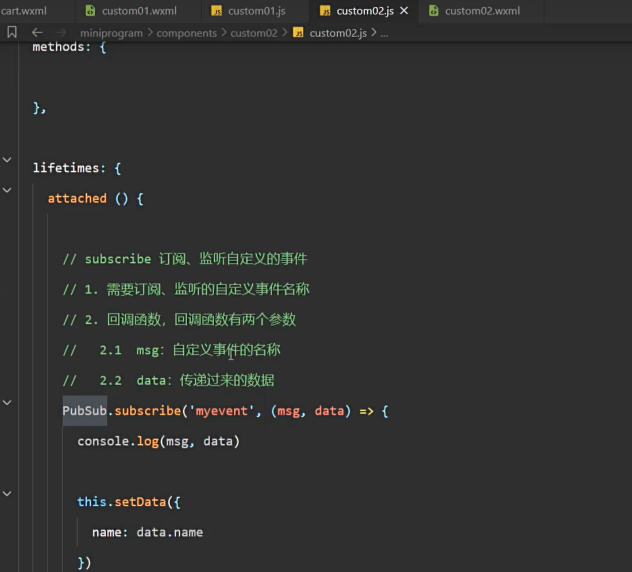 this.getOpenerEventChannel()方法获得一个EventChannel对象,进行监听、发射事件 wx.navigateTo方法中可以定义events配置项接收被打开页面发射的事件