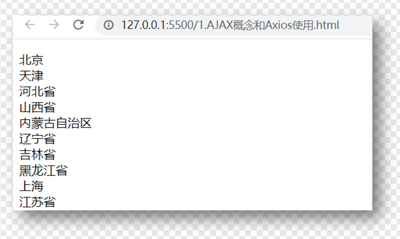 需求:从服务器获取省份列表数据,展示到页面上(体验 axios 语法的使用)