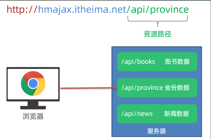 获取省份列表数据 - 目标资源地址:http://hmajax.itheima.net/api/province