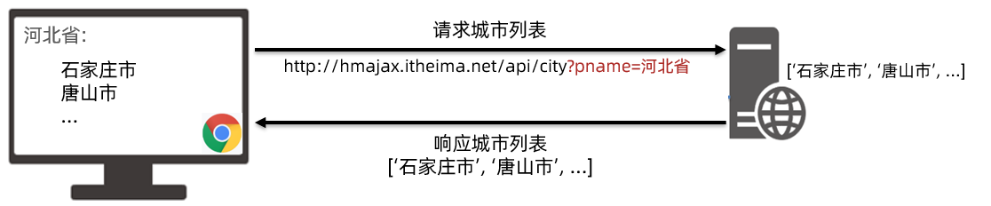 举例:查询河北省下属的城市列表,需要先把河北省传递给服务器