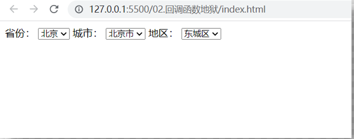 - 切换省份,设置城市数据到下拉菜单,并清空地区下拉菜单